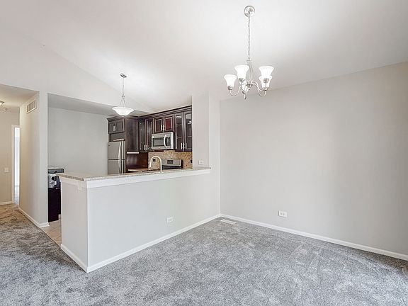 Check out the 3D tour of this move-in ready, end unit home with many upgraded features. Freshly painted and new carpet throughout. Kitchen boasts glass front cabinets, stainless steel appliances, and granite countertops & backsplash. Bright and airy Living Room and Dining Room exit to private balcony. Master Bedroom with attached full bathroom and walk in closet. Lower level offers Family Room with fireplace, full bathroom, and exit to attached 2 car garage. Open concept floorplan, vaulted ceilings, & granite wall caps! Conveniently located near excellent schools, parks, shopping, dining, interstate, and Metra train station.