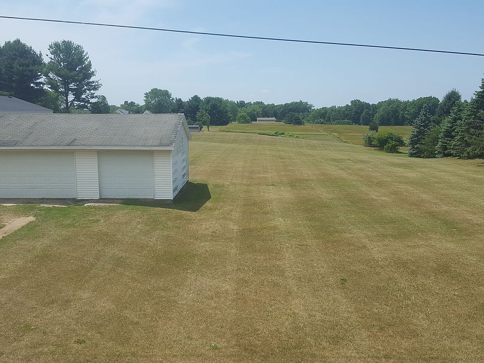 2.8 acres- lot size is (147.2 x 866.92) Lot looks like the shape of three football fields. Garage needs a little TLC. If you enjoy golfing it's right across the street. Land already has electric, is high & dry, and ready to build. Thanks for looking!