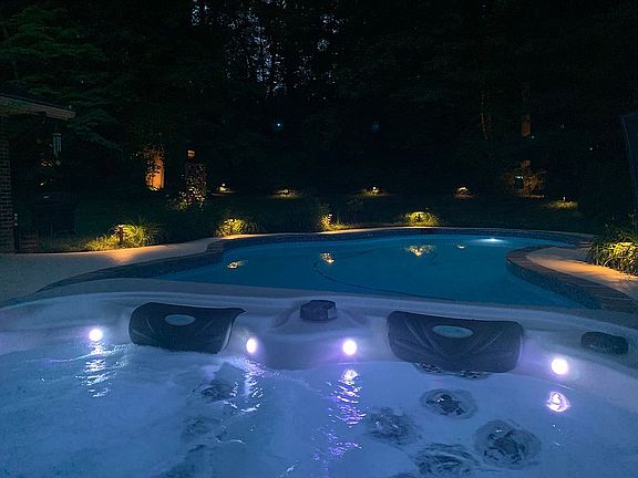 Beautifully appointed all brick rambler on 1.2 acre level lot, perfect home for entertaining! Gorgeous cherry floors, great layout- LR & FR open to back courtyard w/ gunite pool, hot tub and sauna--great privacy. Wonderful kitchen with SS appliances, granite countertops, cherry cabinets. Master bedroom & renovated bath features double vanities and a walkin tiled shower. Solar panels transferable.