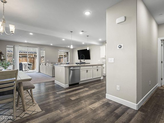 Built in 2019, this spacious 3 bedroom, 2.5 bathroom home in Damonte Ranch is an end unit with no upper or lower neighbors. This home is very well-maintained with a 2-car garage and bright open floorplan. Beautifully upgraded kitchen, with laminate plank flooring. Upstairs features 3 spacious bedrooms and two full bathrooms. Built with efficiency in mind, this home features dual thermostats for the heating and cooling along with a tank-less water heater. The Fenced in back patio gives you a private outdoor space with pavers and gate access. Includes access to an onsite gym and play area. Fantastic location, with access to the nearby wetlands, walking trails, schools, shopping, and many outdoor activities close-by. Tesla Charger in the garage, Washer, Dryer and Refrigerator are all included in the sale.