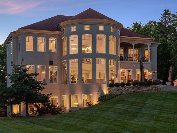 Landmark Lake Minnetonka Estate located on 130+ feet of prime Lake Minnetonka lakeshore with perfect elevation and long South-Easterly views has long been admired with almost 2 acres of manicured grounds and dramatic spaces both inside and out. Over 9000 sf of sophisticated custom detailing and design features including a breathtaking foyer that opens to the jaw dropping 2 story wall of windows with impressive fireplace, exquisite chandelier and circular staircase that paints the picture of timeless architecture and impeccable design.The main level also includes a gorgeous library with lake views and fireplace, large gourmet kitchen with circular island, walk out patio with built in grill, grand formal dining room, venetian plaster walls, elevator, three large bedrooms on upper level including the primary suite with lakeside balcony and fireplace and luxurious owner's spa like bath. The lower level features another expansive bedroom and private bath, home theater, wine room, large bar for entertaining, billiards area and a wonderful family room that opens to the lower lawn.