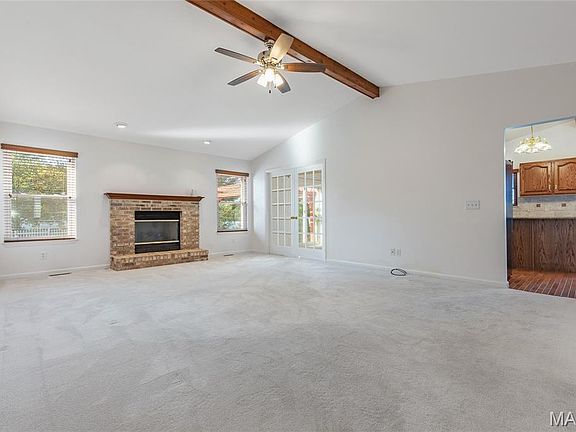 Charming ranch located in the popular subdivision of Somerset Manor in Wentzville! This home boasts 3 beds, 2.5 baths, and over 3,000 sqft plus the finished lower level. Spacious, vaulted living room features a gas fireplace & opens to the formal dining room. Kitchen boasts granite counters, black stainless steel appliances, refrigerator included, tile backsplash, wood floors, center island, black composite sink, pantry & dining area with bay window. Vaulted primary suite with walk-in closet & luxury bath with soaking tub & separate shower, newer shower door, dual vanity & newer fixtures. Main Floor laundry! Finished lower level features a huge rec room with laminate plank floors & half bath. Highlights: 2 car garage, new HVAC (2021), new water heater (2024), newer roof, new carpeting (2022) & newer windows throughout. Relax outside on the newer stamped concrete back patio and enjoy the spacious yard with extensive landscaping, firepit area, pergola & fenced in with a 6ft white vinyl privacy fence.