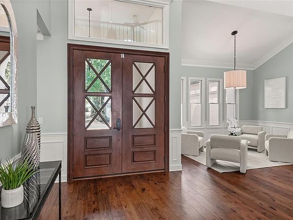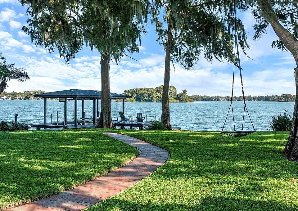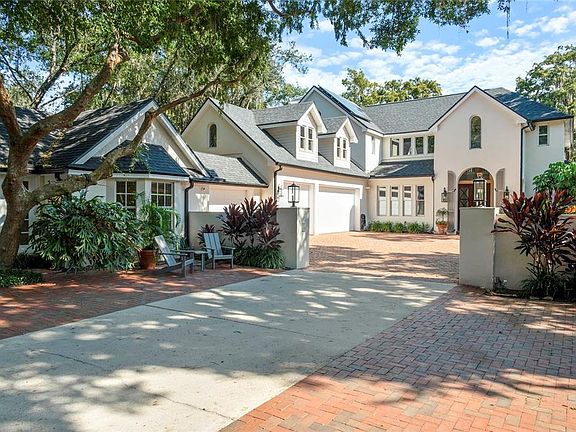 Tucked away on a quiet and beautiful Lake Maitland lot in the highly desirable Green Oaks neighborhood, this stunning French Provincial residence offers magnificent water views from nearly every room. With one of the most private entrances and lots in all of Winter Park, this timeless home blends European charm with modern comfort. The light-filled, open floor plan features a downstairs primary suite and a gorgeous family room with gas fireplace, opening to the pool and lake. The gourmet kitchen, also facing the backyard, is the heart of the home. Featuring granite countertops, light cabinetry and gas cooktop. The open layout includes the eat-in breakfast area and family room. Multiple French doors to the pool and lakefront for everyday indoor-outdoor living and enjoy breathtaking views that make every moment feel like a getaway. Upstairs, two generously sized bedrooms-each with en-suite baths are joined by a cozy conversation area with lake views, a large bonus room and a private office/study that could easily be an additional bedroom. A connecting guesthouse offers a true retreat with two bedrooms, a full bath, living area and kitchen, perfect for hosting friends or family. Sparkling pool, lush landscaping, and private dock on Lake Maitland, enjoy awe-inspiring sunrise views over the Isle of Sicily. Craftsmanship is showcased throughout, from the millwork to the 4-car garage, with extensive updates: roof (2021), multiple A/C systems with UV lights (2020–2025), new flooring throughout downstairs and all bedrooms (2020), updated upstairs windows (2020), rebuilt balcony with Trex decking, new pool equipment (2020) and pool converted to salt (filter 2024), Generac whole-house generator, Trex deck and dock with new cables and 7,500-lb lift (2022), new primary, upstairs guest suites and powder baths (2025), marble porcelain fireplace surround, remote shades in the primary suite, and new lighting fixtures throughout. Surrounded by manicured grounds and minutes from downtown Winter Park, Park Avenue shopping and restaurants, Enzian Theater, library, bike paths, and top-rated schools, (Dommerich, Maitland Middle and Winter Park High School). Just around the corner from Park Maitland and near Lake Highland and Trinity Preparatory Schools. This lakeside masterpiece offers unmatched privacy, luxury, and timeless sophistication-a truly exceptional home. Ski, wakeboard, pontoon or cruise around Dog Island and Isle of Sicily on the chain of lakes. Enjoy the magic of the holiday season- festive boat parade and holiday light displays. 121 ft of lakefront on the Winter Park Chain of Lakes.