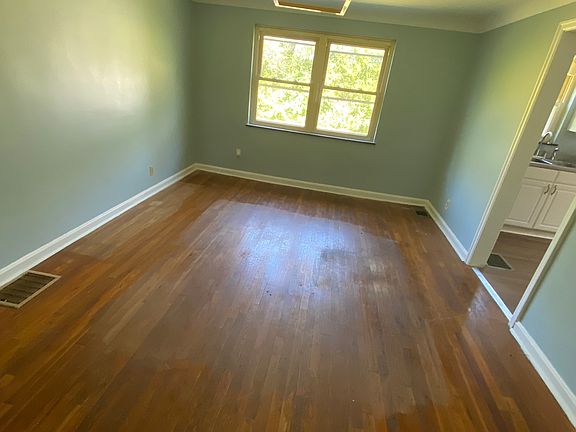 Spacious 2-bed, 1-bath home with a large kitchen, living room, and dining room.