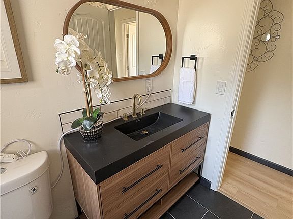 Wake up every morning to a masterpiece—golden sunrise skies spilling across the horizon from your own expansive view deck. This completely renovated 4 bedroom, 2 bathroom 1950s rambler blends mid-century charm with modern elegance, creating a home that feels both timeless and fresh. Inside, a stunning custom stack stone fireplace serves as the heart of the living room—perfect for cozy evenings or gathering with friends. The brand-new kitchen is designed for both beauty and function, featuring custom cabinetry, stone counters, designer tile backsplash, premium slide-in gas range, and stainless steel appliances including a new refrigerator and dishwasher. The interior laundry/pantry offers smart storage and efficiency. Both bathrooms have been transformed into spa-like retreats with all-new tubs, showers, and vanities, while a new energy-efficient HVAC system ensures year-round comfort. French doors open to the spacious view deck—the perfect spot for coffee in the mornings, al fresco dinners, or stargazing on warm summer nights. Set on a generous, fully fenced 0.41-acre lot, the property offers privacy, security, and endless potential—imagine a pool, lush garden, Plenty of space for all your toys and vehicles. The landscaped front yard creates a welcoming first impression, while the expansive backyard invites creativity and fun. Build an ADU, large shop or massive garage! or all three! Ample dry storage under house as well! (approx. 250 sq. feet) This isn’t just a home—it’s a place to build memories, plant roots, and enjoy the beauty of every day. Priced well below recent closed sales in the neighborhood!