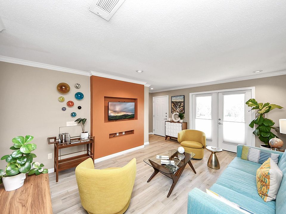 Porcelain tile flooringTastefully updated townhome condoQuartz countertopsFull-size washer and dryer