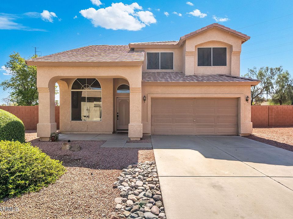 Welcome to this beautiful two-story home with a HUGE lot in a secure gated community. Fresh paint and brand-new carpet set the stage for a bright, open layout with vaulted ceilings and abundant natural light. The spacious kitchen offers plenty of room to gather. Upstairs, the generous primary suite provides comfort and privacy. Outside, enjoy the sparkling pool and covered patio complimenting the expansive lot designed for true Arizona living.