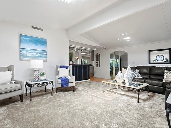 The BEST lot in Los Amigos! RARE DOUBLE WIDTH TWO-CAR CARPORT plus EXTRA LONG DRIVEWAY. No parking hassels for you and your guests...unlike so many other communities. This amazing 1,900+ square foot layout feels like a large single family home. Downsize or upsize in style here with huge, SEPARATE family room with fireplace and wet bar...perfect for entertaining or movie night for the whole gang! The large formal living and dining spaces offer ample room for any furniture layout and include a lovely southern exposure, and vaulted ceilings. Any cook will love the gorgeous, remodeled kitchen with brand new white cabinetry and quartz counters! PLUS sooooo much storage everywhere including a butler's pantry and an inside utility room. Large double pane windows throughout this home bring in loads of natural light into every room. Both bedrooms are king size with plenty of closet space and every piece of your furniture suites. The Primary bedroom has a separate shower and an oversize soaking tub. Relax and unwind on the large front porch, a perfect spot for morning coffee and enjoying ocean breezes EVERYDAY! New carpet throughout adds a fresh, cozy feel to the home. Large, convenient storage shed in the back, provides ample space for all your seasonal belongings. Enjoy the peace and tranquility of this quiet community while being just minutes away from Huntington Beach’s vibrant shopping, dining, and stunning coastline.