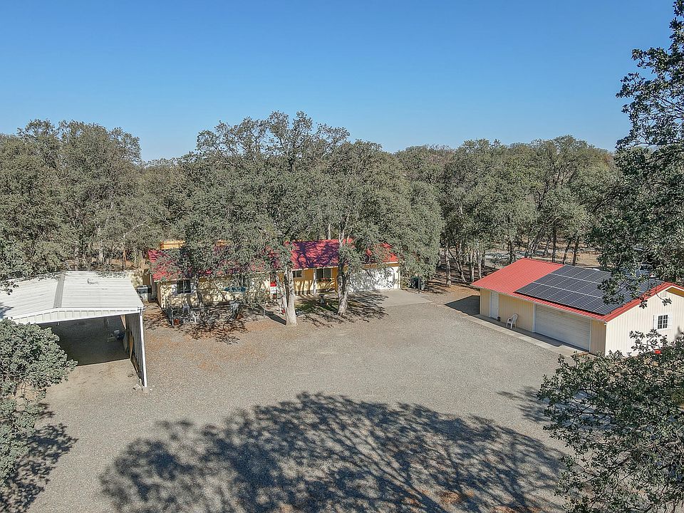 Nestled in the desired area of Oak Knolls Estates you will find a tranquil setting with a recently updated custom 3-bedroom, 2-bathroom home, with owned solar, backup generator, spa, attached garage, Huge RV carport shelter, detached shop w/an additional bonus room with possible Mother-In-Law conversion, on almost 2 usable acres and horse friendly. Entertain friends and family with your gorgeous new kitchen featuring custom white cabinetry, quartz solid surface countertops, new stainless-steel appliances, kitchen which is plumbed for gas and electric, canned lighting, custom island with granite leather countertop, and opens to the dining and living area. The living room is large and full of natural light, pellet stove will keep you warm in the winter, home is also equipped with newer HVAC,