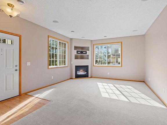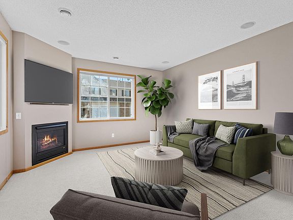 Welcome to this beautifully maintained end-unit townhome in the sought-after Delgany neighborhood! Thoughtfully designed for comfort and convenience, this home offers a spacious yet easy-to-manage layout, surrounded by mature trees and serene nature views. The main level boasts a well-appointed kitchen featuring stainless steel appliances, ample cabinetry and counter space, under-cabinet lighting, a breakfast bar, and a walk-in pantry. The light-filled living room includes a cozy gas fireplace and in-ceiling speakers, while the adjacent dining area and convenient half bath complete the main floor. Upstairs you'll find a generous primary suite with a large walk-in closet, a second bedroom, a full bathroom with both a soaking tub and separate shower, a versatile loft/flex space, and a dedicated laundry room. The oversized two-car garage includes overhead shelving for additional storage. Notable updates include a new water heater (2024), insulated garage door (2024), water softener (2023), stainless steel appliances (2020), A/C (2019), roof and siding (2019). Tucked away off the street in a quiet, private corner of the community, this home offers peaceful wetland views from the front porch and is just steps from a local favorite, Mama G’s. Enjoy easy access to Main Street Rogers and Pheasant Acres Golf Course as well as Target, Pints and Paddle, Maple Grove Hospital and so much more off 94 and Maple Grove Parkway. Don’t miss your chance to live in this prime location within a rapidly growing community—welcome home!