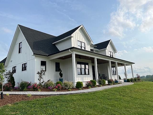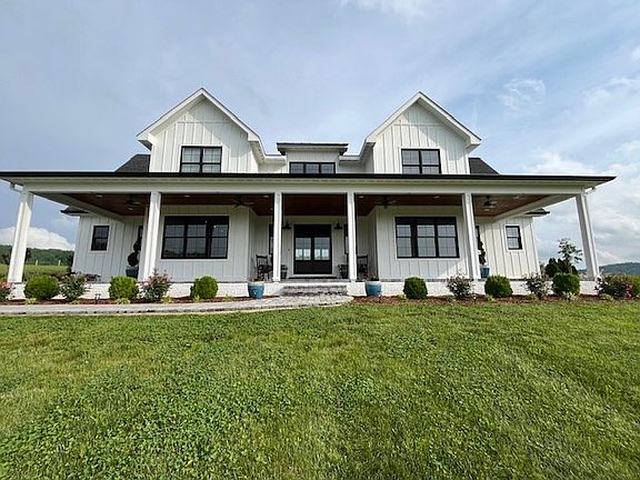 Rare opportunity to own a stunning newer construction custom home with spectacular mountain views from every window and door!! This home was custom built by the Builder as their personal home and features upgrades not normally seen in new construction! This modern farmhouse boasts 10' and vaulted ceilings as well as 8 ft doors on the main floor with an open floorplan, two primary suites, two laundry rooms and custom cabinets/upgraded quartz countertops in the kitchen, walk-in pantry and laundry room. All the vanities are free standing, furniture style pieces with marble tops. The main floor offers first floor living with an amazing primary suite and an additional bedroom which is currently being used as an office. The second level offers an additional living space as well as a second option for a primary suite along with two guest bedrooms and another full bathroom. The living room has a gorgeous white-washed brick Isokern ventless fireplace with a remote and the vaulted ceiling