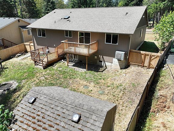 Craftsman style rambler. Smart Home-control via apple home kit. Open concept living, 3 spacious bedrooms w/den or 4th bedrm, 2 full bths w/tile floors. Enter into the living rm w/FP & vaulted ceilings, ceiling speakers. Kitchen w/granite counters & island, white cabinets,newer appliances, beautiful newer LVP floors. The primary suite has double sinks & a huge walk-in closet. The 3 other rooms are nice size. Newer Heat Pump w/A/C, hot water tank, appliances. Tiered deck, fully fenced, fire pit. Shed w/50-amp, hard wire cat 6, & A/C w/ T.V. Generator ready. 50-amp RV/level 2 EV charger. 3 lakes, pool house, fishing, parks, beaches, pickleball, baseball courts, 10 miles trails. New roof before closing.Close to shopping, & JBLM, & Olympia.