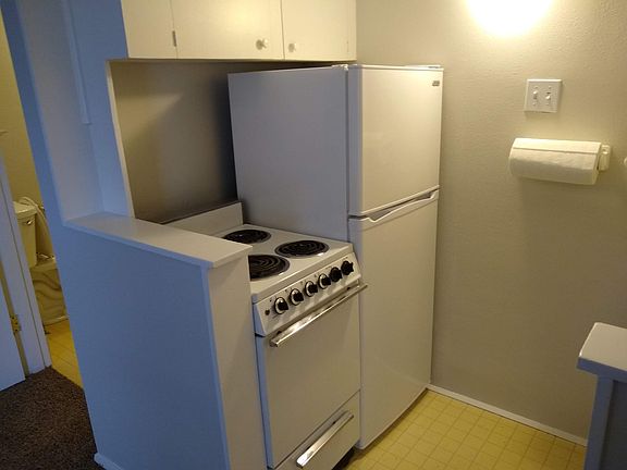 Newer paint, carpet and refrigerator. Walk to UW/Cascadia or Downtown Bothell. Rent includes water, sewer and garbage and is available now. It is a corner unit located on the second floor in the 8-unit apartment building. No smoking/vaping/incense, no pets and a background/credit check is required ($40) as well as first month (prorated) and last month's rent and a $500 security deposit. Newer paint, carpet and refrigerator. A second deep closet to store things in. The apartment building is located directly across the street from McMenamins hotel, restaurants and theater. Swim free at McMenamins saltwater pool. Great apartment for students that like to study. It is not necessary that you are a student. Free off street parking nights and weekends. Save up money, with this inexpensive unit, to buy a condo. or house in the future.