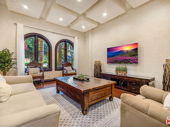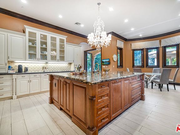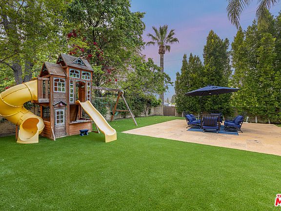 Fully furnished and equipped, this estate is available for long and short-term rentals. It features 7 bedrooms and 8 bathrooms. Located at the end of a quiet cul-de-sac, it's within a short distance of Ventura Blvd. The property boasts a large, open floor plan with high ceilings, a theater room, office space, and a fully equipped kitchen. The expansive master bedroom offers a sitting area, custom walk-in closets, and an en-suite bathroom with dual sinks, a vanity, a walk-in shower, and a separate soaking tub. The vast backyard includes a large pool with a slide, a Jacuzzi, and a playset.