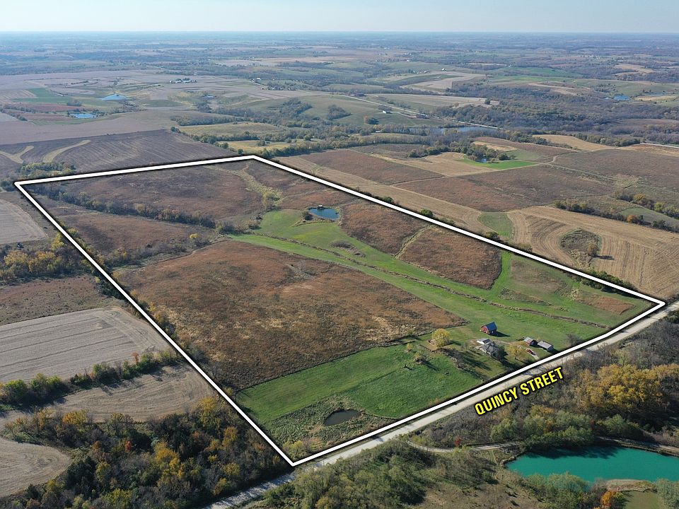 The farm features 52.88 acres enrolled in the Conservation Reserve Program (CRP) under CP2, planted to native grasses and wildflowers. The CRP acres generate an annual payment of $9,398 ($177.72/acre) through 2032. Rolling terrain, timbered draws, and open grassland create an ideal habitat for wildlife, while the timbered draws in the southeast corner form a natural travel corridor for deer. A small pond with a dock adds both scenic and recreational value. The topography of this property is well-suited for adding a large pond.