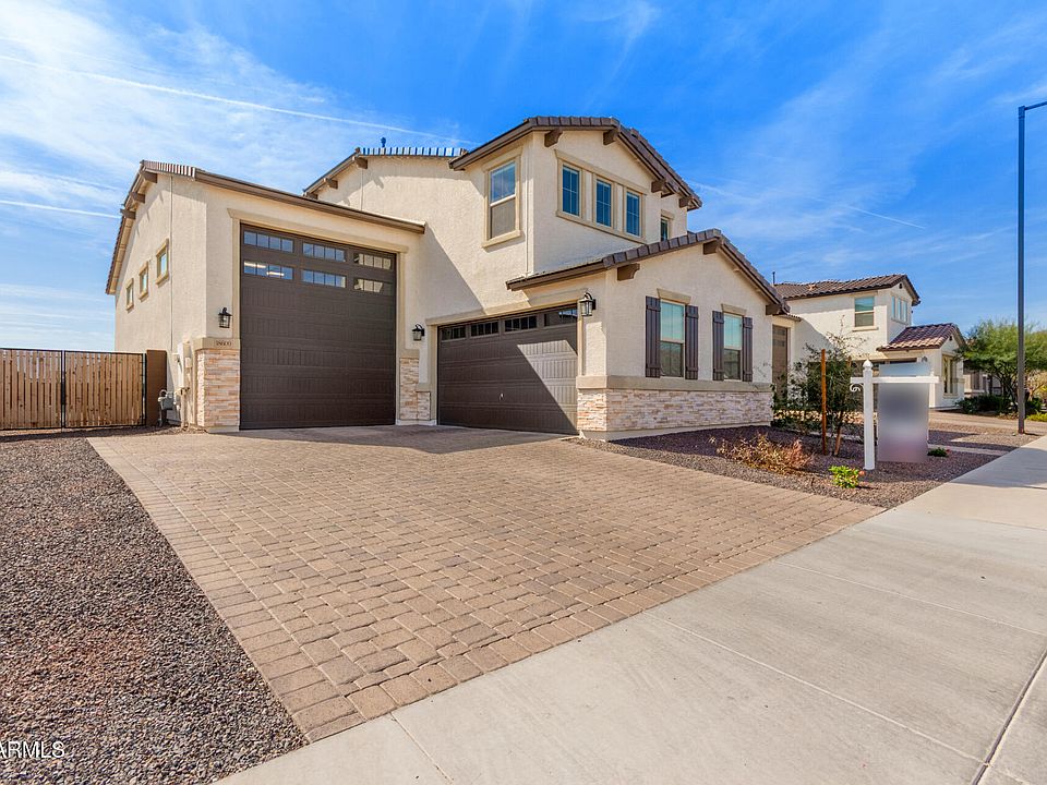*Hard to find oversized lot + RV garage!* So many designer touches! Wood tile flooring through out main areas. Great room plan w/no wasted space. Gourmet kitchen gas cooktop, double wall oven 2 tone cabinets w/hardware, extended length cabinets at nook upgrade & pendent lighting. Family room has fireplace w/wood mantle, extra can lighting & wood tile flooring. Downstairs has full bdr + bath. Upstairs has loft, separate built in tech center, 2 bdr's + full bath. Primary suite has deluxe bath option w/walk in shower & pedestal tub. Backayard has extended patio & is fully landscaped w/paver patio, paver walkways, grass, arbor & plants on a drip. Garages have epoxy flooring & RV garage has backyard door upgrade. More upgrades incl water softener & permanent trimlights. Tons of upgrades!