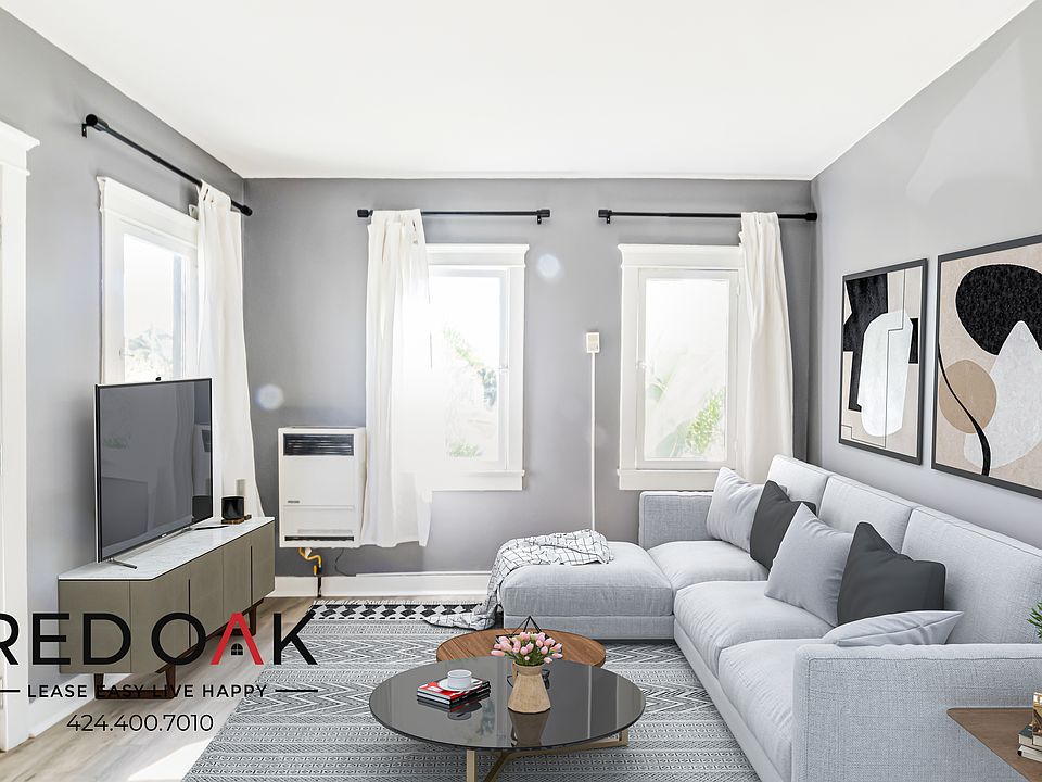 ~2 Weeks FREE~ Recently Refreshed One Bedroom Bungalow with Hardwood Style Floors, Tons of Natural Light, Stainless Steel Appliances, On-Site Laundry, and Included Parking ~ In Prime Los Angeles! *MOVE-IN SPECIAL* **Resident will receive a one-time credit of 2 Weeks FREE off of the Market Rent Price of $1,795 in the 3rd month of tenancy, on approved credit. The net effective rent shows the savings over the entire 12-month lease term. The advertised price is based on the NET EFFECTIVE RENT.* Home Highlights: Classic Style: Fall in love with this beautiful vintage-style building, with white-painted wooden walls, and two small gardens on each side of the entrance. Naturally Lit: Enjoy brand new windows and lots of natural sunlight, accentuating the hardwood-style flooring and spacious rooms. Climate Control: An efficient gas furnace will keep your home cozy all year. Modern Kitchen: Featuring custom-built hardwood cabinets, stylish butcher-block style countertops, and stainless steel appliances. Comfortable Bedroom: Bright and airy, this room offers a generous amount of closet space. Elegant Bathroom: Boasting modern fixtures, a soaking tub with a convenient shower head, vanity with ample storage, and a well-lit mirror. Easy On-Site Laundry: Adding convenience to your everyday chores. Included Parking: Enjoy an included space for your personal vehicle. Pet-Friendly Policy: This community warmly welcomes your approved pets. Fabulous Location: Conveniently located near several businesses, restaurant options, and being close to the golden state FWY makes moving around the city feel like a breeze. Don't miss out on the opportunity! Available for an immediate move-in. LEASE TERMS: 1 Year Lease Pictures and descriptions are of EXACT unit Unit Comes UNFURNISHED Staged Photos to offer ideas for how to use the space. Square Footage is approximate. Street Parking only. Showings may not be 1-on-1. All information must be validated on Red Oaks Website since 3rd party websites can feed incorrect information.