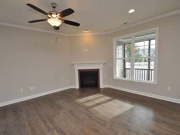 Gas log fireplaceContemporary open-concept floor planCovered front porchPrivate drivewayWide plank hardwood floorsFully-tiled walk-in showerEnd unit