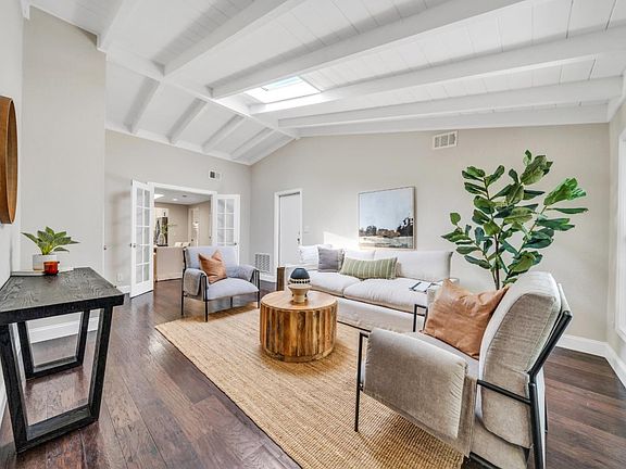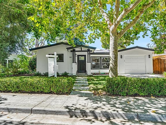 Beautifully remodeled single-story Craftsman home nestled in a prime Rex Manor location. Built-in 2000 and recently updated. Elegant living room w/ vaulted tongue and groove beamed ceiling and French doors to the adjacent dining room. Spacious U-shaped kitchen featuring an abundance of cabinetry, Corian countertops, breakfast bar, s/s appliances, skylight, and garden window. Separate family room w/ high ceilings, wall-to-wall built-in entertainment center, skylight, and slider to brick patio. Generous size master suite with ample cabinet space and remodeled Master bath with custom vanity and Jacuzzi tub. Other amenities include designer lighting, berber carpet,solar panels, a Tesla power wall, Spacious backyard that offers a brick patio and fire pit, an Eco lawn, and a variety of plants/shrubs and plants. Attached 1 car garage w/ auto door, new epoxy floor & car charger. Walk to Therakauf Elementary school, minutes to Google and downtown Mountain View / Cal Train. Close to Shops, dining, commute routes, and Tech. Great Mountain View Schools Therakauf, Crittenden, Los Altos High