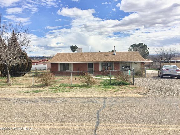 Great Location, great price, great condition, Cute and cozy cottage style home on large lot (.27 acre). 2 bedroom, 1 bath, plus bonus room (has been used as 3rd bedroom, laundry room, living room with wood burning stove, electric central heat plus 2 newer hvac split systems (1 in living/dining area and 1 in large bedroom, evap cooler on roof but hasn't been used in a while, covered rear patio, fence yard, 4 storage sheds, gravel driveway, concrete parking pad, room for RV Parking, No HOA, Centrally Located, close to amenities. Includes washer, dryer, dishwasher, stove, fridge, free standing microwave. All furniture available outside of escrow. Home on Town of Camp Verde Water and has a 1000 gallon septic.