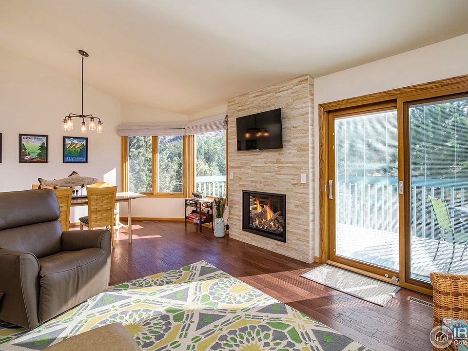 Come home to this wonderfully remodeled Northridge condo with open layout and great views. Everything is new in this bright, sun-filled home. Beautiful contemporary gas fireplace in the vaulted-ceiling great room. Designer Quartz Countertops in the spacious brand-new kitchen. Great outdoor space with nice decks off great room and master BR. Roomy BRs, full bath, laundry and big closets downstairs, 3/4 Bath upstairs. Close to Lake Estes and Lake Trail. Easy access to Downtown, hiking, biking etc.