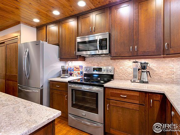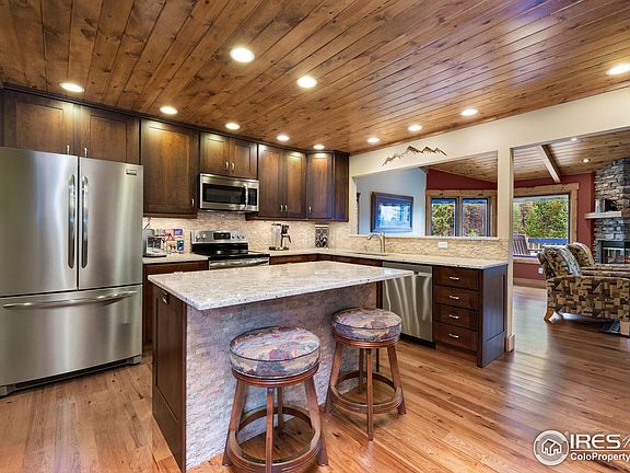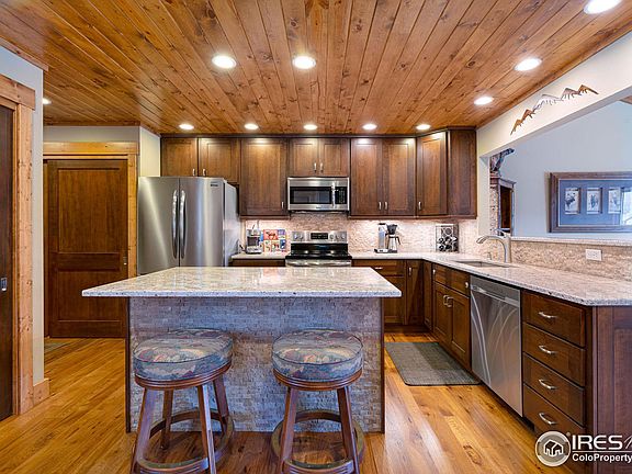 Experience the caliber of the upgrades upon crossing the threshold of this 2 bedroom, 1.5 bath condo. Meticulously remodeled literally from top to bottom this home exudes a feeling of warmth and quality throughout. The main level exhibits a generously sized kitchen with custom cabinetry, an abundance of closet space and matching stone on the island and backsplash. Recessed lighting throughout the main level coupled with the wood ceilings allow a modern but warm feeling. The large living room windows and sliding doors leading to the spacious deck, allow for an abundance of natural light. Great location, walk to Lake Estes and the Lake Estes Trail where you can walk or bike for miles