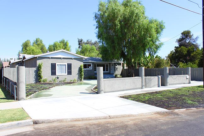 Standard Sale. Alarm on property! Staged and newly remodeled home on a huge lot with semi-circle driveway has big living room with lots of windows. ENORMOUS granite kitchen w/center island has wood pergo flooring, all new cabinets, stainless steel appliances, sparkling tiled floors and large, very large, family dining area that can seat big family gatherings. All bedrooms on one side of the house: two master-style suites each with own bathroom (one has oversized jacuzzi tub w/skylight + dual vanity) and walk-in closets; two other bedrooms share a full-sized bathroom with shower/tub in the center hallway. Laundry closet w/hookups also in the hallway. New fixtures, switches, carpet and paint throughout. Fresh grass is growing in nicely now... Must see to appreciate. Walk to Blythe Elementary!