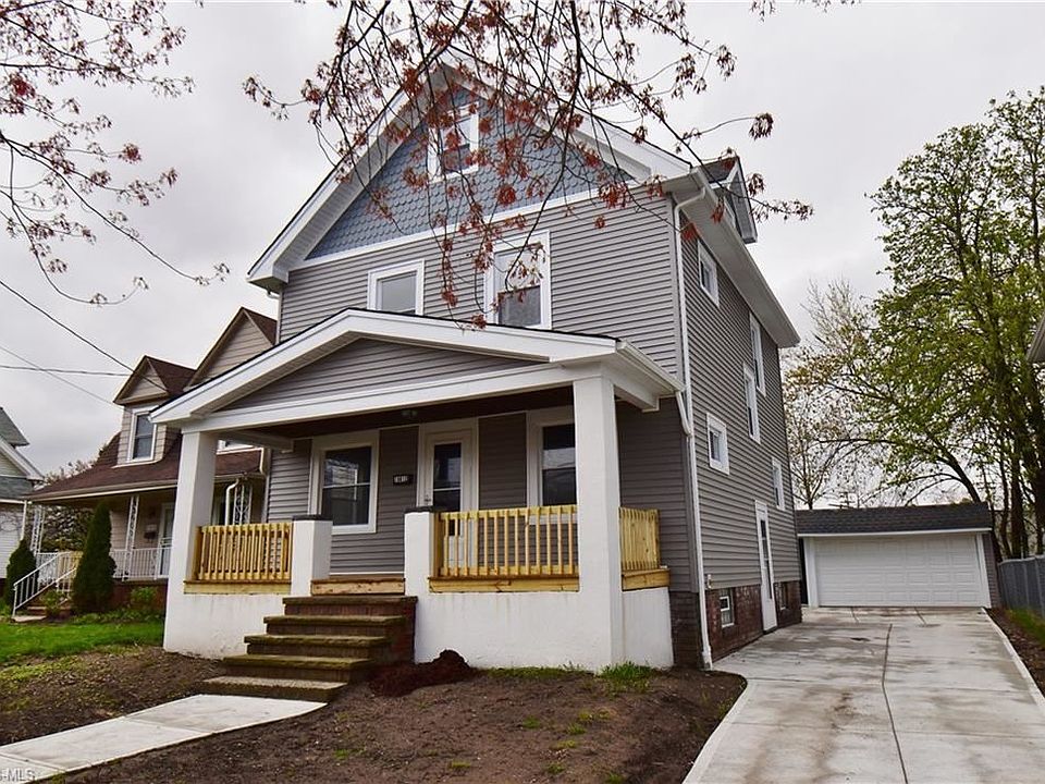 Beautifully renovated, this four bedroom colonial offers plenty of room for all and is like moving into new construction! Renovation updates include new: furnace, central air, vinyl replacement windows, roof tear off, house and garage, hot water tank, plumbing, all flooring, concrete drive and walkways, vinyl siding, glass block in lower level, front porch and hand rails, all new kitchen with range and fridge, interior paint, most electrical and light fixtures, garage door with remotes, storm doors, and more; all completed within the last six months! Covered front porch, large enough for all to relax and enjoy the changing seasons, greets you as you enter into the oversized living room. Formal dining room with bench seating steps into the brand new kitchen. Powder room completes the first floor. Second floor offers four bedrooms, full bath and access to walk up third floor; perfect for all your storage needs. Open lower level is neat and clean! Two car garage is detached with opener. This home is conveniently located close to shopping, restaurants, Lake Erie and Wildwood Park, Waterloo Arts and Entertainment District, public transportation, and offers easy freeway access with Downtown Cleveland and University Circle just moments away-