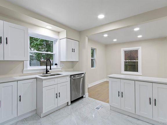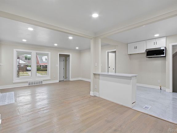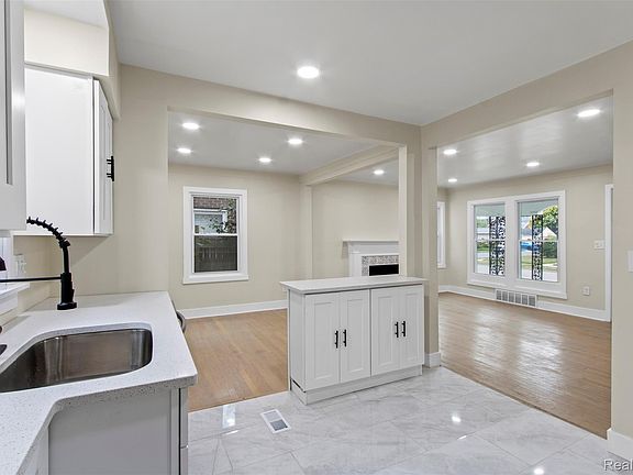 Welcome to this beautifully transformed Detroit bungalow, where classic charm harmonizes with contemporary comforts! This inviting home offers four generous bedrooms and two updated bathrooms, all within a bright open layout accentuated by recessed lighting and a stylish statement fireplace.