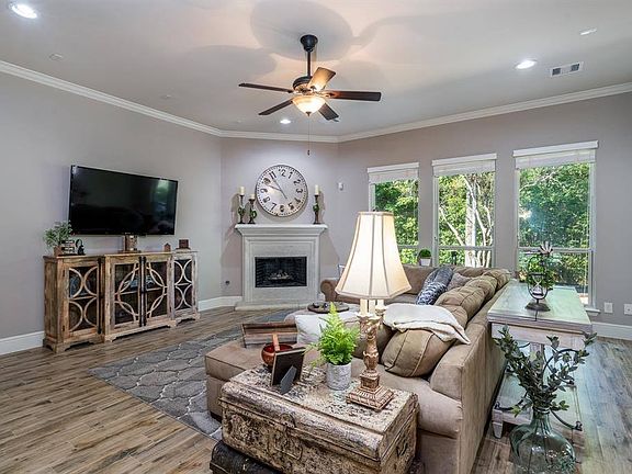 Immaculate 1 story 4/3/3 home located in the gated community of Lakes of Cypress Forest *Beautiful gated front porch *Large formal dining area off entry *Open concept family room with corner fireplace and relaxing views of the serene backyard *Gourmet kitchen features granite & wood island/bar, custom cabinets with stone tile backsplash, accent lighting above & beneath the cabinets, stainless appliances, copper farm sink, & carriage lamp lighting above the island *Gorgeous wood look tile floors throughout all common areas, rock like tile in baths, & lush carpeting in bedrooms *Primary suite features huge walk in closet with custom built-ins & access to the utility room *Primary bath features double vanities & separate tub/shower *Bedroom 2 features a private bath *Upgraded barn doors open to bedroom 4 which also doubles as a study *Relax in the backyard paradise with large covered patio, fan, & flagstone decking *2 water heaters, 3 car tandem garage, & more! *Must see!