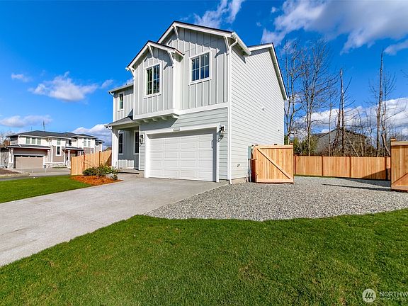 Welcome to Viewcrest by Sager Family Homes! Nestled on a serene corner lot backing to a lush greenbelt, this home offers a tranquil & private retreat. The Richmond plan features an open-concept layout that seamlessly connects the living, dining, & kitchen areas, perfect for both everyday living & entertaining. The kitchen boasts ample cabinetry, a spacious island with seating, & modern finishes. Upstairs a cozy loft offers versatility as an office, playroom, or reading nook. The primary suite includes a walk-in closet & private en-suite bathroom. The upper level also features three additional bedrooms & laundry room. With easy access to JBLM & nearby amenities, plus air conditioning & a heat pump, this home combines comfort & convenience.