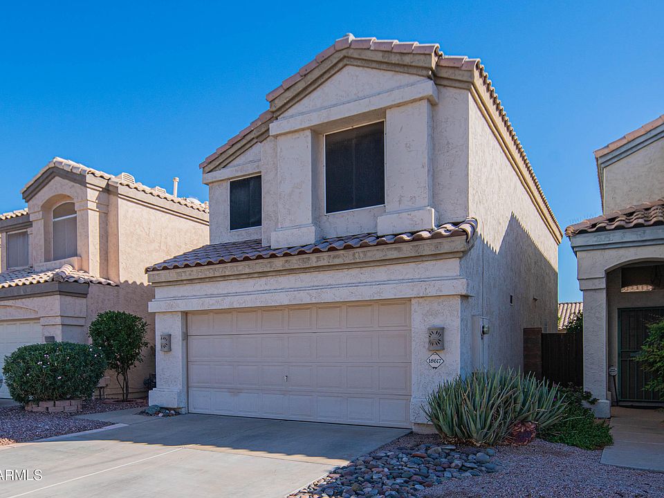 Bright and inviting 3-bed, 2.5-bath home featuring vaulted ceilings and abundant natural light. The primary suite offers dual sinks, a walk-in closet, skylight, and a luxury-size bathtub for the perfect unwind. Two additional bedrooms provide comfort and flexibility for guests or a home office. Step outside to your private backyard spa, ideal for relaxing after a long day. Recent upgrades include a new roof (2025), Trane A/C (2019), and enhanced insulation for year-round efficiency. Enjoy a community pool and spa nearby. Excellent location just a few miles from Desert Ridge, near PVCC, PV Golf Course, hiking trails, and easy access to Loop 101 and SR-51. Walkable to restaurants, coffee shops, and conveniences. Available now!