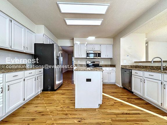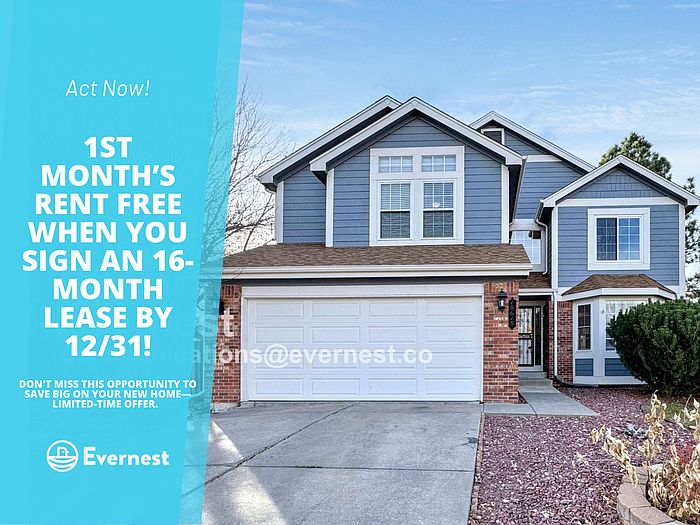 The interior boasts versatile hardwood and carpeting throughout and a bright, open layout with a two-story room connected by a large walkway, ideal for relaxing and entertaining. The property is ideally located, providing easy access to great schools, as it is within walking distance of Peakview Elementary School, Thunder Ridge Middle School, and Eaglecrest High School.