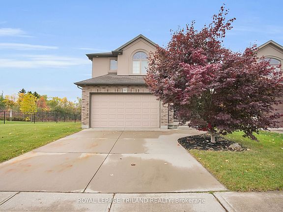 Welcome to this 2-storey home situated on a large reverse pie shaped lot in a desirable neighbourhood just a 10-minute drive to Western University and University Hospital. This property offers great curb appeal and convenience, with shopping nearby for everyday needs. Inside, you'll find an inviting open concept kitchen that flows seamlessly into the living room, where a cozy gas fireplace adds warmth and charm. Patio doors lead to a fully fenced backyard featuring a spacious 2 tiered deck, perfect for entertaining or relaxing outdoors. The primary bedroom includes a luxurious 5 piece ensuite bathroom, and the lower level has been drywalled and is ready for your personal finishing touches. A double car garage with inside entry adds extra comfort and functionality to this home. With some interior touch ups you can transform this home into a real gem, perfect for the handyman.