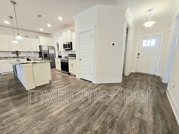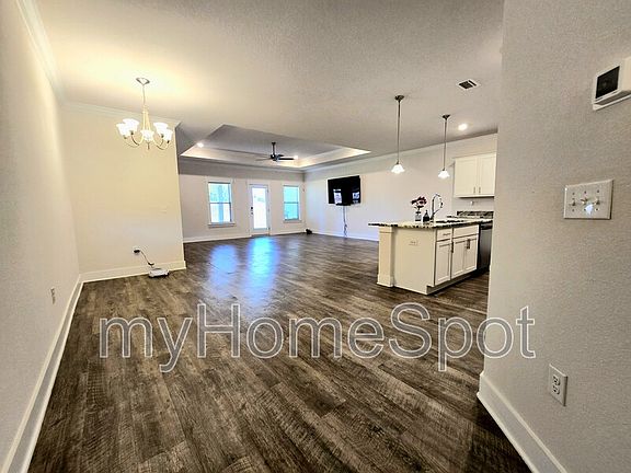 Beautiful 2021 Townhome in Cantonment's Smith Station directly across the street from the New Kindsfield Elementary School. Open floor plan, 3 br/2 ba with Luxury Vinyl Flooring throughout all the common areas/bathrooms, and plush carpet in the bedrooms. Private spacious covered back patio right off the back of the gorgeous Living Area. 9' trey ceilings in the living area and master bedroom. Open kitchen with a huge food pantry, granite countertops, beautiful wood cabinets, and electric stainless appliances. Large laundry room off the kitchen with Washer and Dryer included. Master bathroom has a large garden tub, double sink vanity, toilet room, and a HUGE walk in closet. 2 Car Garage on the front of the home with driveway parking as well. Home is vacant and ready for your move in !