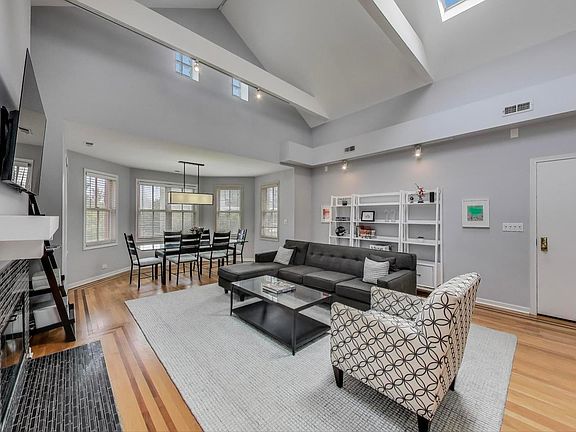 Penthouse duplex living at its finest in this 2-bedroom, 2-bath + loft/office space offers the height of versatility. Vaulted ceilings and multiple skylights allow for natural light throughout creating an airy, open atmosphere. Revel in the comfort of a cozy gas fireplace, updated kitchen featuring quartz countertops, tile backsplash, new appliances (2022) and refined bathrooms designed for contemporary living. Outdoor living to entertain or relax and admire the city views. This penthouse provides the convenience of in unit washer/dryer and garage parking. Prime Lincoln Park location, Oscar Mayer School District, walkable and convenient to all that is notable and necessary.