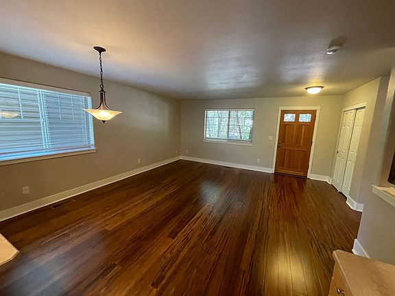 This beautiful, modern gem is close to downtown Bend, the Deschutes River, and hiking trails. This green built tri-level 2 bed, 2.5 bath end-unit townhome features double master-suites with walk-in closets on the top level, with an attractive spacious open floor plan with hardwood floors on the main level. The kitchen comes equipped with stainless steel appliances, full-size washer/dryer, breakfast bar, and built in desk. HOA provides yard maintenance and snow removal with no cost to renter. Additionally, the home features a single car-tandem garage with plentiful room for recreational gear and storage.