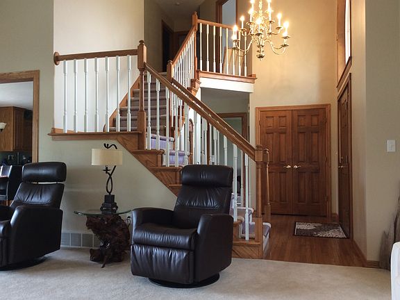 Spacious and airy quality home in desirable East DePere location. Deep front yard combined with a parklike setting in the rear offers ample space for entertaining and relaxing. Close to 4 of the fine East DePere schools. Enjoy the birds from the covered patio or the bright spacious dining area and kitchen. There are high ceilings in the foyer and great room with transom windows. Custom window trim, wood foyer floor and open stairway compliment the entry area. 1st floor separate laundry, boot bench, half bath, and double door hall closet are off the insulated, heated, completely finished oversize garage. Upstairs you will find spacious bedrooms with a vaulted ceiling in the front bedroom and a tray ceiling in the master. A flex room off the large island kitchen can be a gathering space or a formal dining room. In the lower level there is a large finished office area. Newer furnace, hot water heater, siding, updated bathrooms , kitchen floor, and interior paint make this home move in ready. Additionally, this home is very energy efficient with very affordable energy costs. Must see!