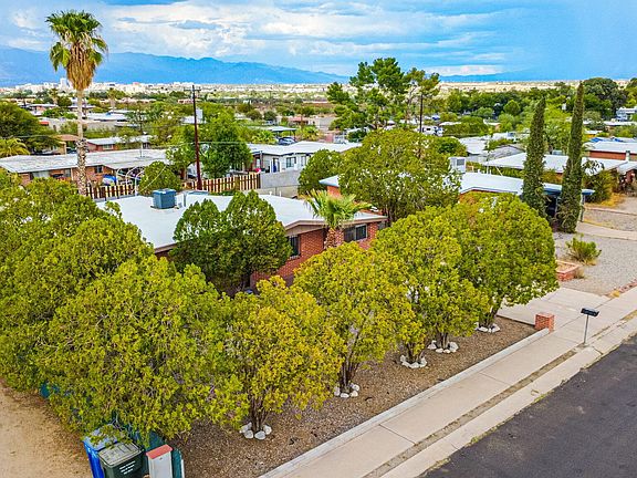 Desert retreat awaits! This three-bedroom, two-bathroom ranch-style brick home delivers style and comfort with an open floor plan, remodeled bathrooms with updated fixtures, and spacious primary suite featuring private ensuite bath, walk-in closet, and abundant natural light. The bonus room provides additional square footage not included in listed square footage, plus laundry area, offering flexibility for home office, workout space, or creative studio. Enhanced by stained concrete floors, fresh paint, and kitchen with stainless steel appliances, this home combines modern updates with desert charm. Private backyard entertains effortlessly with mature fruit trees, covered patio, and storage shed, while front yard Juniper trees create natural shade and privacy, all framed by spectacular mountain views in close vicinity to "A" Mountain and Tumamoc Hill. Recent updates include new roof with transferrable warranty, updated heating and air conditioning system, and a new electrical panel. Located minutes from downtown Tucson, parks, hiking trails, shopping, and major highways - desert living with mountain views awaits.