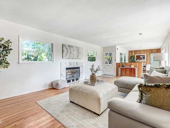 Nestled amongst the trees with huge pool, tons of parking for RVs or whatever other toys in an oversized h-shaped driveway with huge 3 car-carport area all behind protective gates. Welcome to this charming mid-century 3-bedroom, 2-bathroom home in the heart of Northridge, offering a perfect blend of low ranch house character and natural comfort. Nestled on a lush lot with mature trees, this beautifully maintained property features a spacious backyard with a sparkling pool--ideal for relaxation and entertaining.Step inside to find an inviting living room adorned with warm wood-paneled accents, sleek hardwood flooring, and an abundance of natural light streaming through large windows. The open layout seamlessly connects to the dining area, creating an airy and welcoming atmosphere. The kitchen boasts retro charm with vibrant green tile countertops, crisp white cabinetry, and a picturesque window overlooking the backyard.The primary suite is a serene retreat, featuring elegant decor, ample closet space, and large windows that bathe the room in natural light. Additional bedrooms offer cozy comfort, perfect for family, guests, or a home office. Both bathrooms maintain a timeless appeal with clean finishes.Outside, the private backyard is a true oasis, highlighted by a large swimming pool, lush landscaping, and a covered patio--ideal for al fresco dining. The front yard exudes curb appeal, with a tree-lined driveway leading to this classic Northridge gem.With its prime location near shopping, dining, and top-rated schools, this home offers a rare opportunity to enjoy the best of California living. Don't miss out on making this timeless beauty your own!