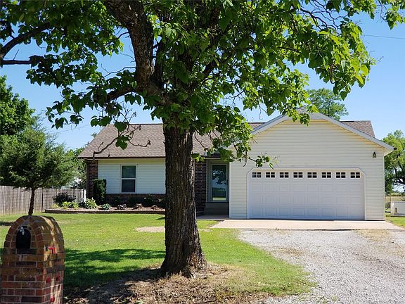 Check out this this 7.45-acre property w/ home & barn just 10 miles N of Claremore, off of Hwy 66! 2 bedrooms 2 bath w/ HUGE basement which could be transitioned into a giant master, theater room or additional bedrooms. Top floor 1110 sq ft. Property is fenced & ready for your farm animals! Producing peach, walnut, pear & apple trees. Large barn w/ concrete floors, stalls & more. Additional outdoor sheds. Appliances stay to include washer/dryer, fridge & microwave! Natural gas generator system included!