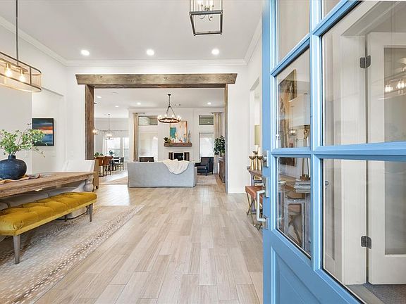 Features of this home that you'll love are the soaring 12-foot ceilings in the main living area, entry and kitchen, complimented by abundant natural light and wood look tile throughout the main spaces and hallways. The kitchen features marble countertops, a large center island, custom cabinetry with pull out spice racks and stylish lighting that continues throughout the home. A vaulted ceiling crowns the spacious primary suite and study while the primary suite also enjoys serene backyard views, a luxurious ensuite bath, and a generous walk-in closet.