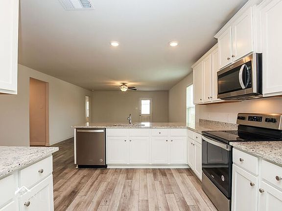 This home includes carpet and luxury vinyl plank flooring, granite countertops, and stainless steel appliances. As you navigate throughout the rest of the home, you'll find a kitchen area equipped with essential appliances, a welcoming and spacious living room, and a spacious backyard perfect for outdoor activities.