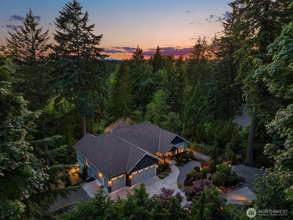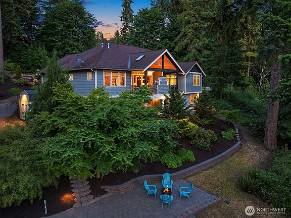 Nestled at the end of a quiet, paved street, this custom-built 5-bed, 4-bath home sits on 6.29 private acres, blending seclusion & convenience—just mins from major amenities. Inside, you’re greeted by soaring ceilings, a gourmet kitchen & a thoughtfully designed layout featuring a main-level primary suite. The lower level includes a second primary suite with its own laundry & wet bar, ideal for multigenerational living, long-term guests or entertaining. Enjoy year-round outdoor living with a covered deck & fireplace overlooking your private oasis. The expansive yard offers multiple patios & potential for a sport court. Located in the highly sought-after Northshore School District, this home offers privacy, functionality & timeless elegance