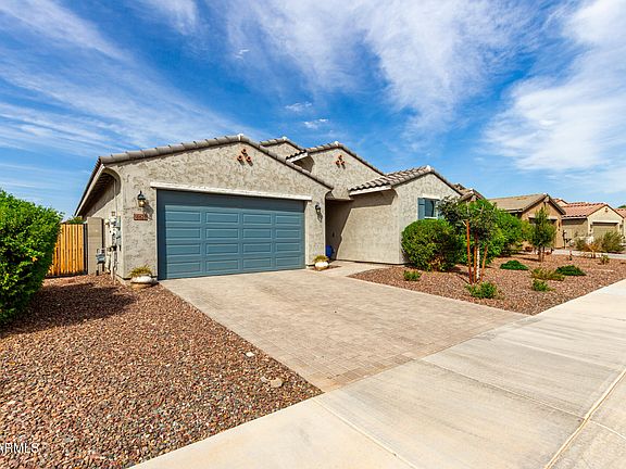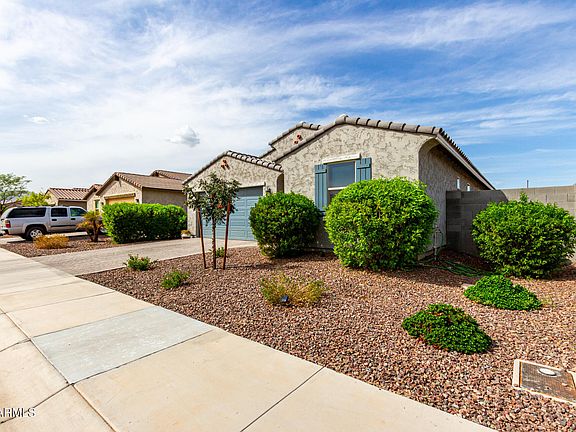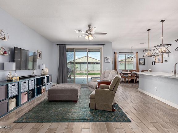 Gorgeous 3 bed, 2 bath home in Waddell w/ split floorplan & additional den/office. This energy-efficient smart home features tons of storage space, 8' door package, wood-look tile & lots of natural light. The eat-in kitchen has recessed lighting, upgraded espresso cabinets, quartz countertops w/decor backsplash, stainless steel appliances, gas cooktop, pendant lighting, dual pantries & large island w/ breakfast bar. The owner's suite has dual sinks, luxurious walk-in shower & spacious walk-in closet. The rear yard features a covered patio, desert landscaping, artificial turf, raised garden beds & fenced dog run. There's also an extended length garage, mud room & large laundry room. Great location in the White Tank Foothills community, near shopping, dining & entertainment. Welcome home!