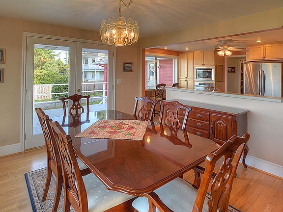 Rare Normandy Park home with Sound and Mountain views from large light filled picture windows in the living/dining/kitchen. Move-in spacious home features four bedrooms, 2 bathrooms upstairs with an additional living room. Master bedroom with double closets and a newly finished walk-in shower. A gourmet kitchen offers plenty of space and a built in China cabinet. French doors lead to a large deck with fantastic sunset views. Freshly painted inside and out in 2021 and a new roof in summer 2020. Plenty of space downstairs with two office spaces and a 3/4 fully renovated bathroom, also a rec room, family room and work shop. Home has radiant heat, A/C and a Main floor laundry room. Fully fenced yard and RV parking. Freeway & shopping nearby.