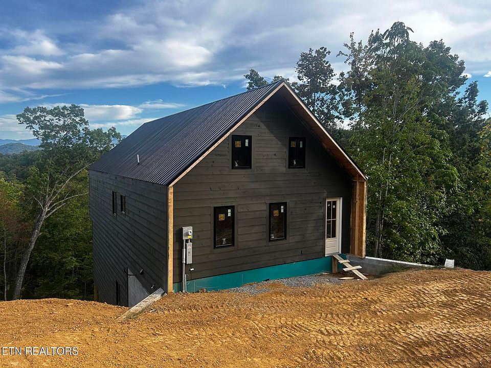 Experience modern mountain living in this newly constructed Scandinavian-inspired cabin, thoughtfully designed with clean lines, natural textures, and premium finishes throughout. Perfectly positioned to face the Smoky Mountains to the east, the home captures breathtaking sunrise views from every angle. A modern yet inviting atmosphere flows through the space, highlighted by vaulted ceilings on the main level, twelve-foot ceilings in the basement, and eight-foot interior and exterior doors that create an open and elevated feel. Tongue and groove ceilings extend throughout the home, with tongue and groove finishes covering most of the walls, blending warmth and texture with the cabin's minimalist Scandinavian design.