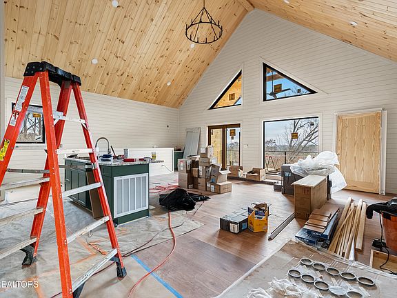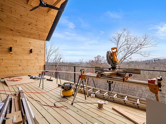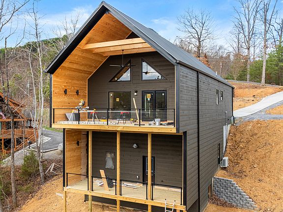 Experience modern mountain living in this newly constructed Scandinavian-inspired cabin, thoughtfully designed with clean lines, natural textures, and premium finishes throughout. Perfectly positioned to face the Smoky Mountains to the east, the home captures breathtaking sunrise views from every angle. A modern yet inviting atmosphere flows through the space, highlighted by vaulted ceilings on the main level, twelve-foot ceilings in the basement, and eight-foot interior and exterior doors that create an open and elevated feel. Tongue and groove ceilings extend throughout the home, with tongue and groove finishes covering most of the walls, blending warmth and texture with the cabin's minimalist Scandinavian design. Inside, the cabin offers four bedrooms and four bathrooms, including two spacious primary suites with ensuite baths that provide ultimate comfort and privacy. A unique enclosed loft bedroom is accessed by a spiral staircase, featuring its own dedicated mini-split AC system and ample storage, making it an ideal private retreat or flexible sleeping space. A cozy bunk room offers additional accommodations, perfect for guests or family. All bedrooms are designed with open closet systems, soundproofed walls, and high wall-mount outlets for TVs, ensuring both comfort and convenience. The bathrooms are elegantly finished with three double vanities, three walk-in tiled showers with built-in niches, and one bathtub/shower combination, offering a luxurious spa-like experience throughout. A massive owner's closet adds to the thoughtful storage solutions, while a walk-in laundry and pantry located just off the kitchen enhances daily functionality. The lower level features a fully finished basement with soaring twelve-foot ceilings, offering a dedicated media room, movie theater, and game room designed for entertaining and relaxation. A built-in electric fireplace adds warmth and ambiance to the main living area, creating a cozy yet modern mountain retreat atmosphere. Outdoor living spaces have been intentionally designed to maximize enjoyment of the surrounding natural beauty. Covered decks provide year-round use and seamless indoor-outdoor flow. The upper deck is ideal for dining, grilling, and lounging while taking in panoramic Smoky Mountain views. The lower deck includes a hot tub with a 220-volt hookup and spigot, along with ample room for additional seating. A thoughtfully placed outdoor fire pit offers the perfect gathering spot to relax and take in the mountain scenery under the stars. Practical features blend seamlessly with the home's stylish design. A hardwired 220-volt, 60-amp Level II EV charger is conveniently located on the front porch for modern living. The concrete driveway is complemented by professional landscaping and low-voltage up-lighting set on timers, creating a beautiful and functional exterior environment. Beneath the home, a large, well-lit crawl space with gravel flooring provides massive additional storage and easy access. This exceptional property combines minimalist Scandinavian aesthetics with luxurious mountain living, making it an ideal primary residence, second home, or high-performing vacation rental. Call to schedule your showing today!