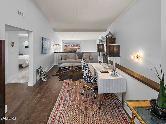 Expansive and sweeping views from this beautifully and tastefully updated Cherokee Bluff condo perfect for those wanting an easy lifestyle with little maintenance. The atrium is welcoming with space for seating allowing you to soak up the sun on a bright sunny day. Into the home, there is a lofted space perfect for a home office or a quiet space to relax and enjoy a good book. The upper level has both bedrooms with the primary suite offering a private view of the Tennessee River from its own private balcony which is spacious enough for an intimate seating area - an amazing location to start or end your day. The attached dressing room is elegant with a private vanity offering plenty of counter space; ample closet space and access to the hall bath. The lower level has a soaring ceiling and the primary living space, kitchen and dining area. With views of the water and the abundance of natural light, this living space is perfect for spending time home alone or with family and friends. Access to the back patio allows you and your guests to spill outdoors and enjoy nature and boat watching along with the fresh air. The adjacent kitchen offers a place for dining with room for a dining table as well a breakfast bar. The kitchen is crisp and modern with open shelving, ample storage and an adjacent laundry room with a three-quarter bath. Stunning views, easy maintenance, plus all the amenities of this gated community - this one is a must!