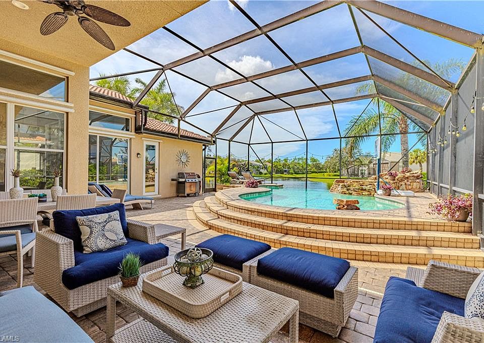 Welcome to 1863 Ivory Cane Point, where million-dollar sunsets and serene lake views await! Located in the heart of Saturnia Lakes, this premium lot is one of the finest available in the coveted 34119 zip code. This rarely available Aquamarine model on the big lake offers 4 spacious bedrooms, 3 full baths, and a 3-car garage, perfect for both luxury and comfort. Step inside and experience a light-filled, split-bedroom floor plan with soaring 12-foot ceilings and elegant crown molding throughout. The large kitchen features upgraded cabinetry and an induction cooktop, perfect for the home chef. Two central air conditioning systems (5-ton and 3-ton), installed in 2017, with a Photomax U/V Light whole-house air disinfection system, ensure year-round comfort with a 10-year warranty for peace of mind. Unwind in your private master suite, boasting high coffered ceilings, two walk-in closets, and its own dedicated 3-ton A/C system. The lakeside guest suite offers privacy and comfort for your visitors. Outside, your backyard oasis features an infinity-edge pool, waterfall, and spa—all perfect for soaking in those stunning sunset views over the lake. Saturnia Lakes is an award-winning community just 15 minutes from Naples' famous beaches. Enjoy resort-style living with access to two heated pools, a hot tub, an updated fitness center, a dance studio, an internet café, saunas, a billiards room, a ballroom, clay tennis courts, a playground, a basketball court, and a putting green. Zoned for A-rated schools and located minutes from premier shopping and dining, this home is truly move-in ready. To top it all off, this home comes with a FREE 12-month home warranty. Don’t miss your chance to own this exceptional property—schedule your private tour today!